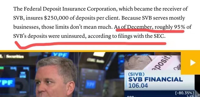 值得注意的是,FDIC作为硅谷银行的破产管理人,其标准保险是为每家银行的每位储户提供最高25万美元的保险,但硅谷银行主要服务的群体是企业客户。另据CNBC报道,根据向美国证券交易委员会提交的文件,截至去年12月份,硅谷银行约有95%的存款未投保。