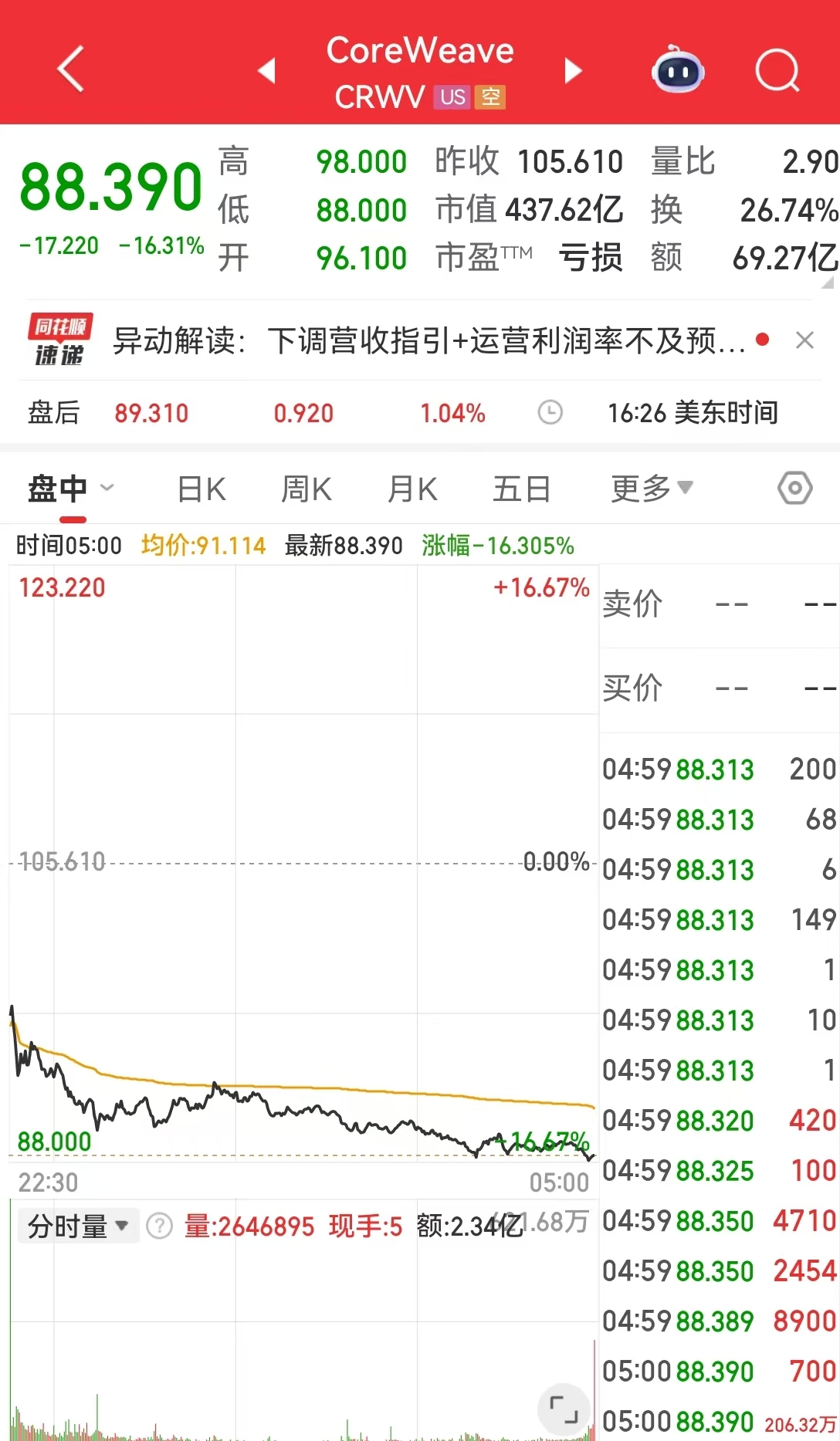 AI科技股CoreWeave,股价暴跌超16%,消息面上,公司下调全年营收预期,下修指引对这家在AI热潮中竞速的公司构成打击。摩根大通将其评级从“增持”下调至“中性”。