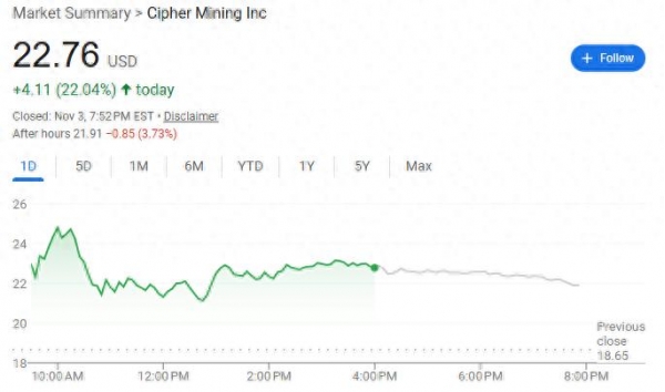 这些与科技巨头的重磅合作,立即引爆了市场。周一交易中,Iren股价大涨11.5%,Cipher Mining股价更是飙升22%,盘中均创下新高。