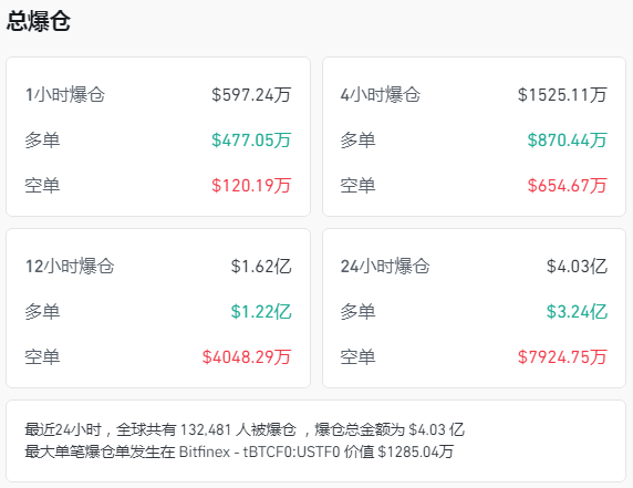 比特币在突破12.6万美元的历史峰值后风光不再,短短数周内跌幅超过20%,市场哀鸿遍野。以太坊的表现同样疲软,在3500美元附近苦苦支撑。更令人揪心的是,在过去24小时内,全球有超过13万投资者遭遇爆仓,损失总额达到4.03亿美元。