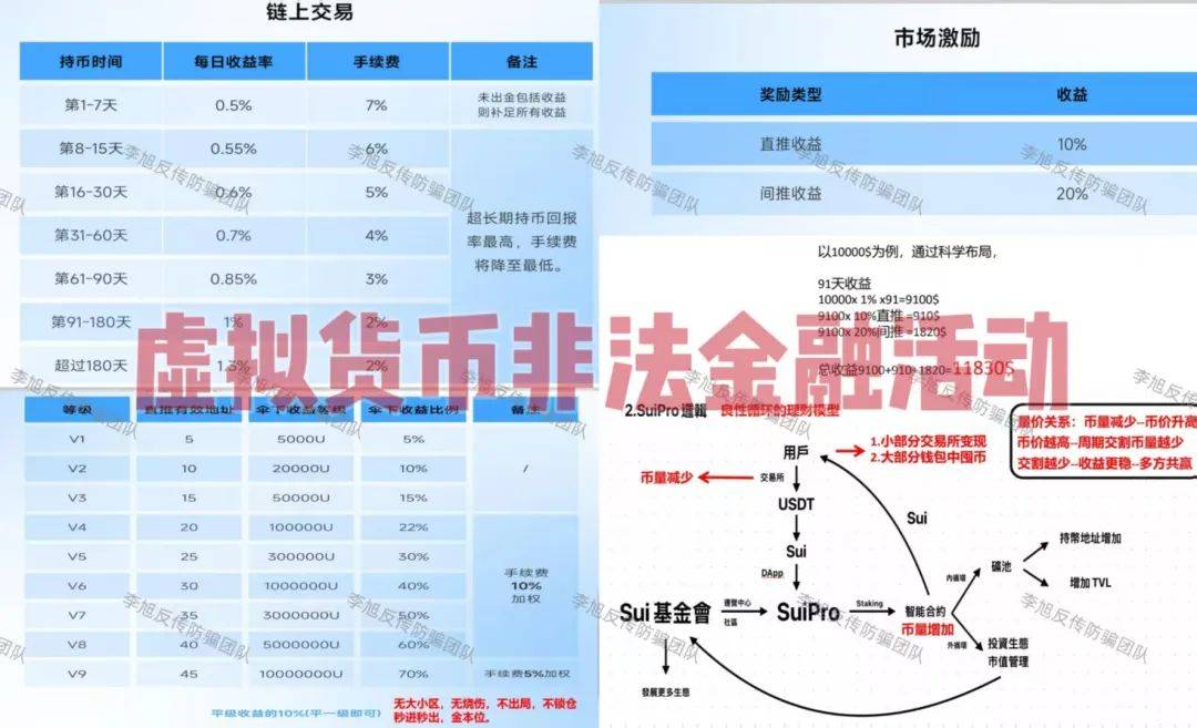 “Suipro”以此承诺保本高收益,利用传销模式推广,违规发行虚拟货币并提供交易服务,参与者不仅面临资金损失风险,还可能因参与违法活动承担法律责任。