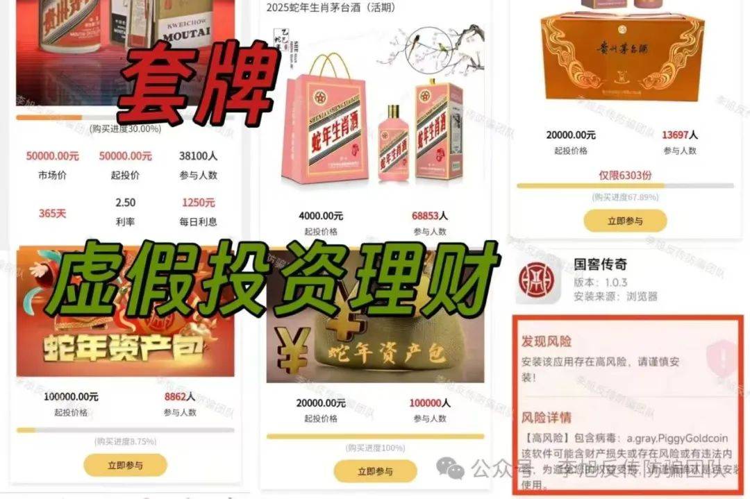 冒充“贵州茅台”名义制作散布假冒涉诈APP,推出虚假投资理财项目,最低缴纳218元,后台数据可人为操控,以高额收益分红吸引参与者认购,属非法集资行为。且用户认购产品需联系客服,通过客服提供的不同银行卡号充值,导致项目后资金难以找回,“洗钱”意图已十分明显。APP下载提示包含病毒,且IP地址显示在境外,网址与“茅台集团”并不相符,为虚假的冒牌项目。