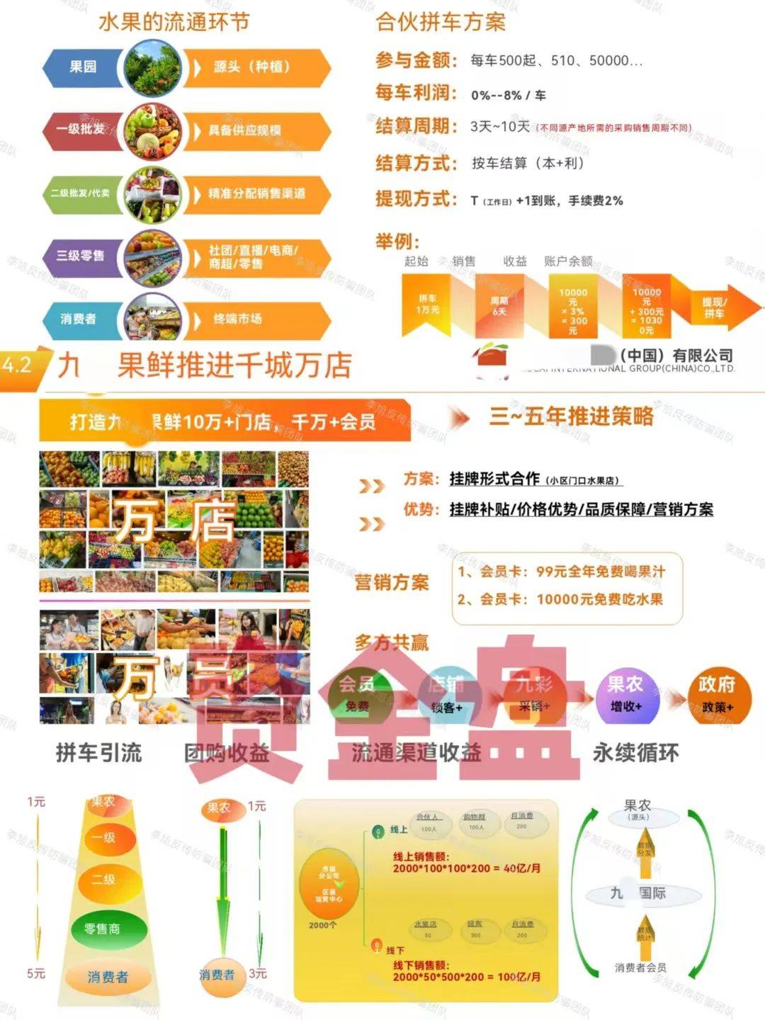以水果生鲜作为包装,推出“合伙拼车方案”。参与金额500元起,承诺0%-8%每车的利润,结算周期3~10天,提现收2%手续费。
