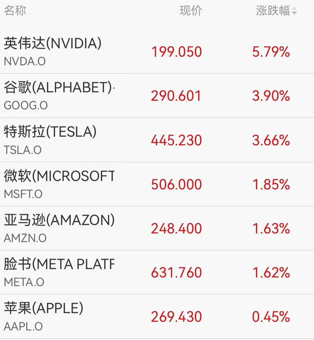 大型科技股集体上涨,其中,英伟达涨近6%,谷歌涨近4%,特斯拉涨超3%。