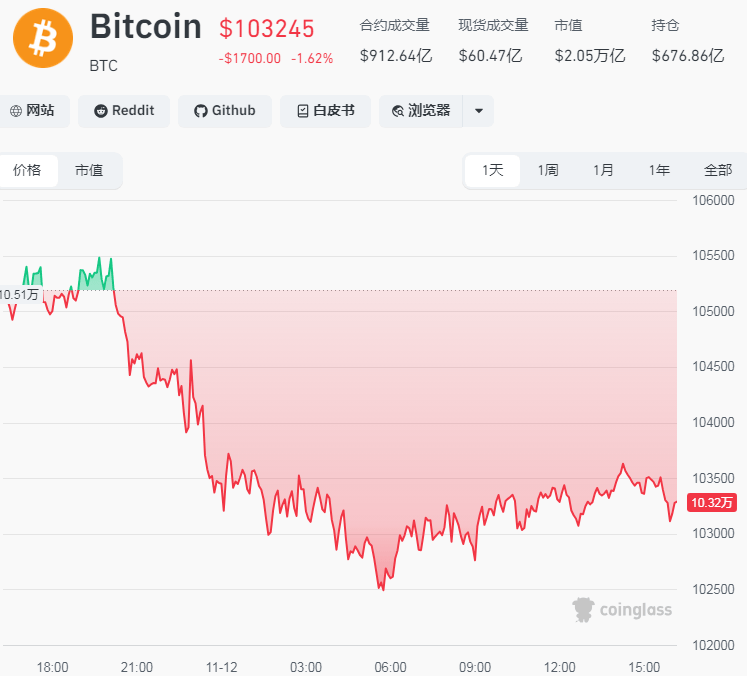 今日,加密货币市场再度上演“黑色星期三”。比特币价格在亚太早盘时段跌破103,000美元/枚,日内跌幅达4%,最低触及102,300美元,创下近两周新低。此前,比特币价格曾一度失守10万美元关口,随后震荡拉升。