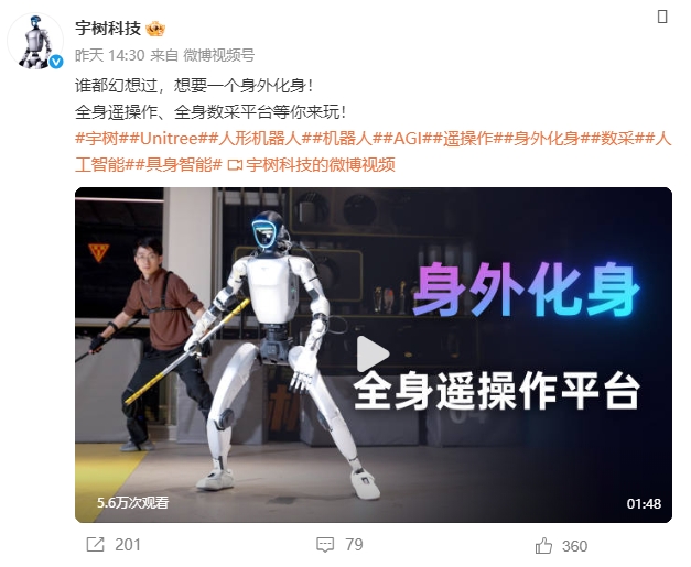 视频中,在人类遥操作的控制之下,宇树的G1机器人能够进行洗碗、使用扫地机器人清洁、整理衣物、端水等家务活动。