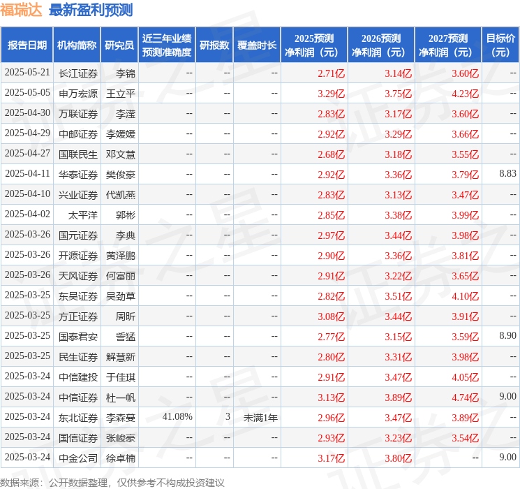 证券之星数据中心根据近三年发布的研报数据计算,东北证券李森蔓研究员团队对该股研究较为深入,近三年预测准确度均值为41.08%,其预测2025年度归属净利润为盈利2.96亿,根据现价换算的预测PE为29.38。
