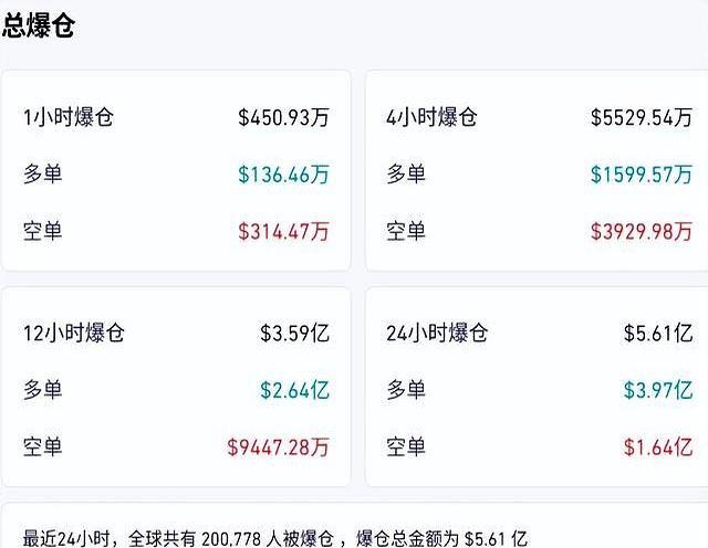 短短24小时内,主要加密货币成交额跌幅在50%到70%之间,持仓额一路狂泻。比特币成交额更是暴跌近70%。Coinglass数据显示,又有20多万人爆仓,损失达5.61亿美元,其中70%以上是多单爆仓。