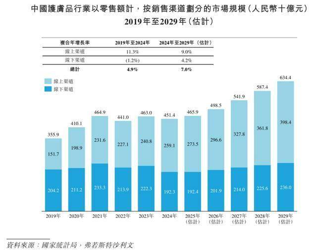 相较于护肤行业,彩妆在线年零售额计,彩妆线年,彩妆在线上渠道的复合年增长率为8.9%,未来五年预计将以8.4%的复合年增长率上扬。