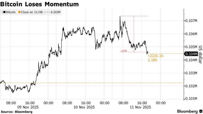 比特币周一一度短暂突破107,000美元,但很快回落至105,000美元下方。这一价格表现与因美国政府重新开放而上涨的股市和信用债市场形成鲜明对比,表明加密资产的内部动能依然不足。自10月10日因特朗普意外宣布关税引发创纪录清算以来,比特币的市值已缩水约3400亿美元。近期低迷部分源于早期大持有者在接近年度高点时获利了结,同时大规模清算事件留下的阴影也挥之不去。